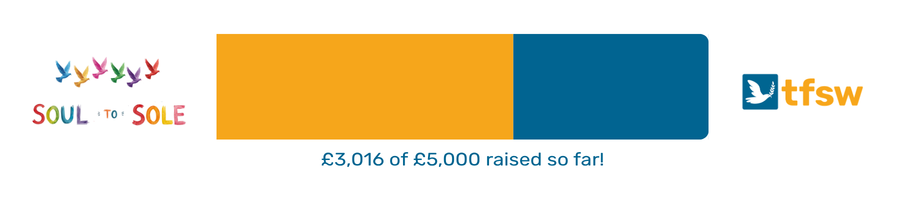 Katherine is aiming to raise £5,000 to support TFSW through her Soul to Sole journey. Stage two of six is now complete, and Katherine is already 60% of the way towards her target, thanks to the generous support of a match funder who pledged to double the first £1,000 raised from the public.